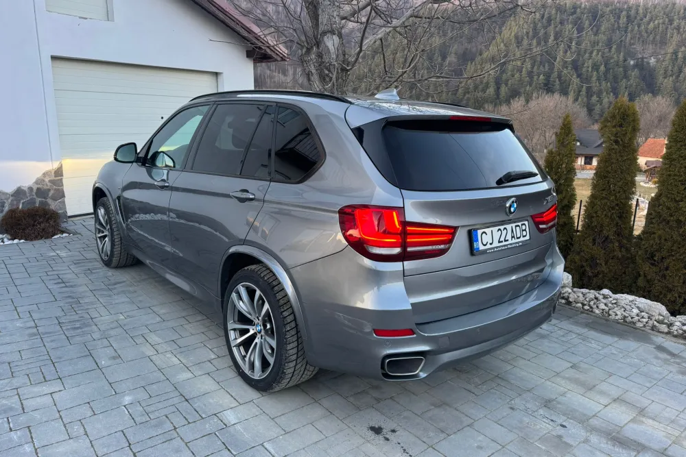 Puterea este transmisă fluid prin cutia de viteze automată cu 8 trepte, cuplată cu legendarul sistem xDrive de tracțiune integrală inteligentă, garantând aderență sigură și dinamică ireproșabilă în orice condiții meteo și de drum. Fie pe autostradă, fie pe drumuri sinuoase, X5-ul impresionează constant.